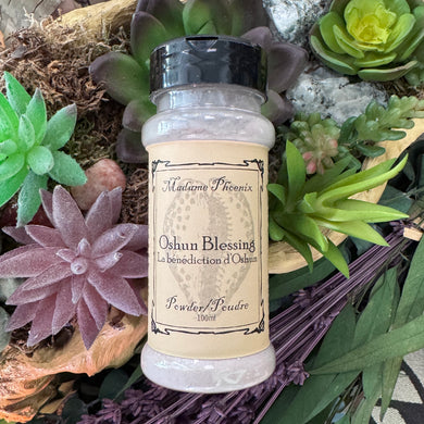 All Madame Phoenix powders are hand made from high quality oils and all natural magical ingredients. They can be used as body powders or as sprinkle powders, where you lightly dust them whoever you wish to fill your space with a magical energy; they can be used in places where an oil would leave a mark or otherwise not be desired- such as dusting a letter or written petition, putting a pinch into your pocket or shoes, dusting the walkway up to your home, or shaken into the rug or carpet or into the corners of the home.