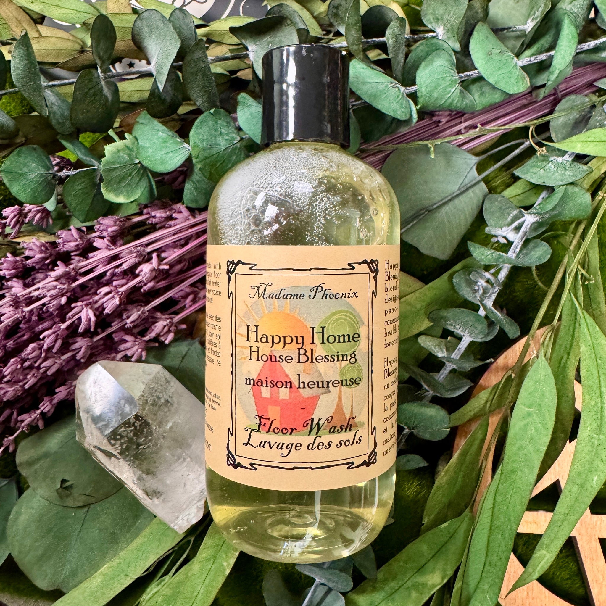 Infuse your home with magic from the ground up! All Madame Phoenix floor washes are made from all natural ingredients , premium oils and are biodegrade and concentrated- one bottle can do about 10 or so washes.