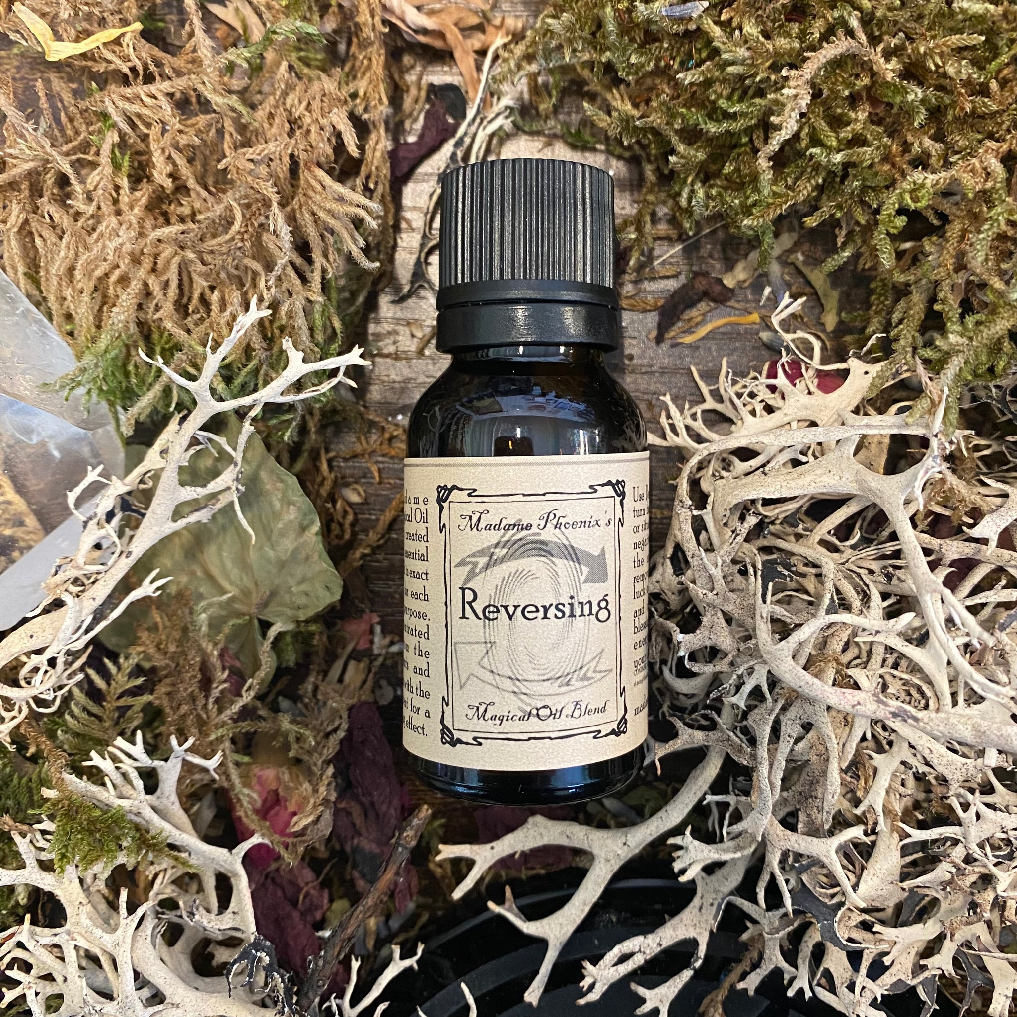 A blend of oils and herbal extracts uses magically to reverse an energy, spell, situation or circumstance.