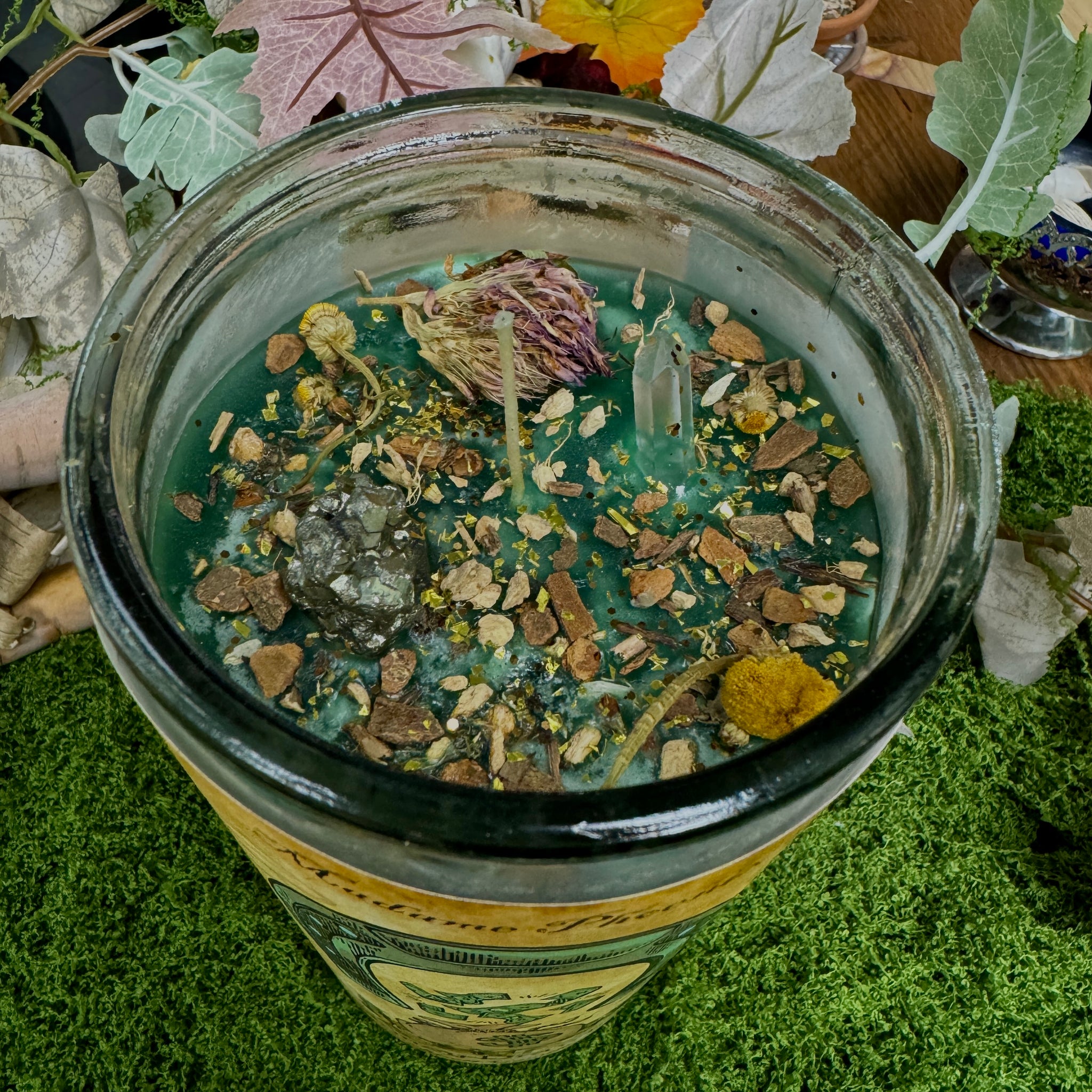 Each element of this candle has been carefully chosen for its magical associations drawn from my years of experience. Burn time is approximately 14 days. You can light it as part of a larger ritual or spell, or simply use it on its own!