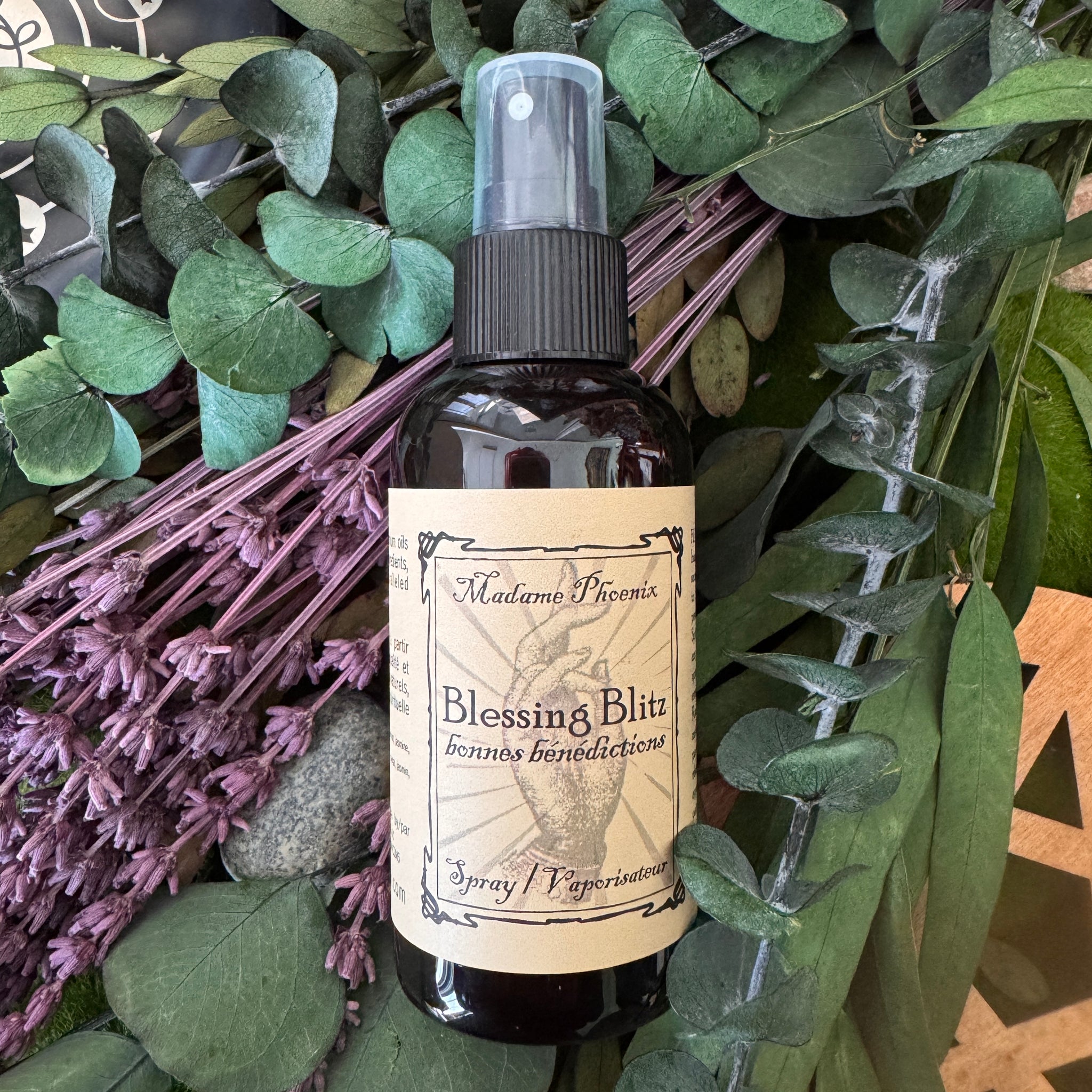 This all natural blessing spray is formulated from traditional ingredients that have been used to attract positive energy, helpful spirits and blessings for thousands of years.