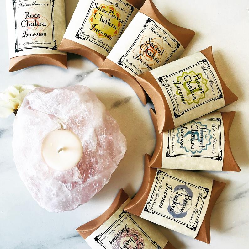 Each of the seven different chakra incenses are formulated from organic herbs, resins and pure essential oils;