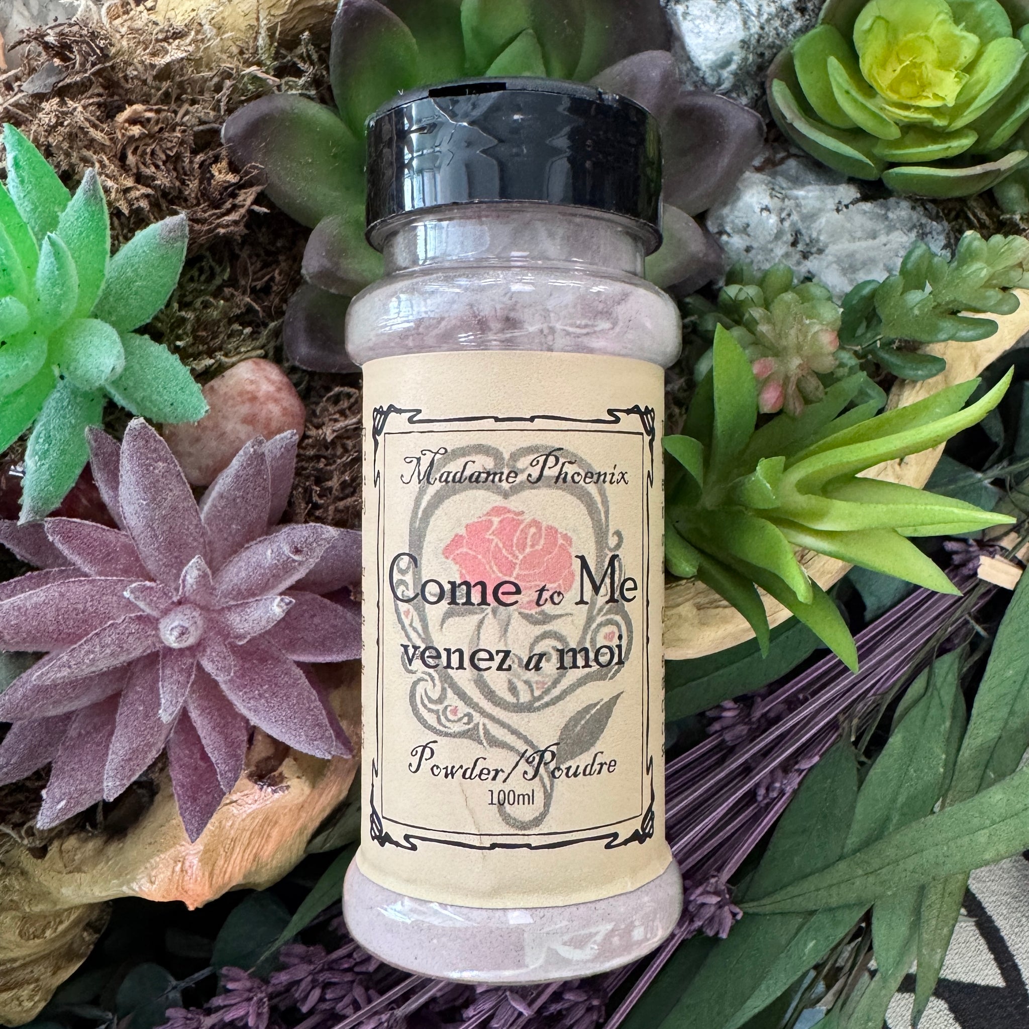 Come to Me powder is a staple magical supply in the North American hoodoo tradition; there are many different recipes for it, and unfortunately much of what is currently available on the market is simple talcum powder (a known carcinogen) scented with chemical synthetics. You deserve better for your love magic! This Come To Me powder is made by hand from organic herbs, pure essential oils and magical ingredients. No filler; all natural!