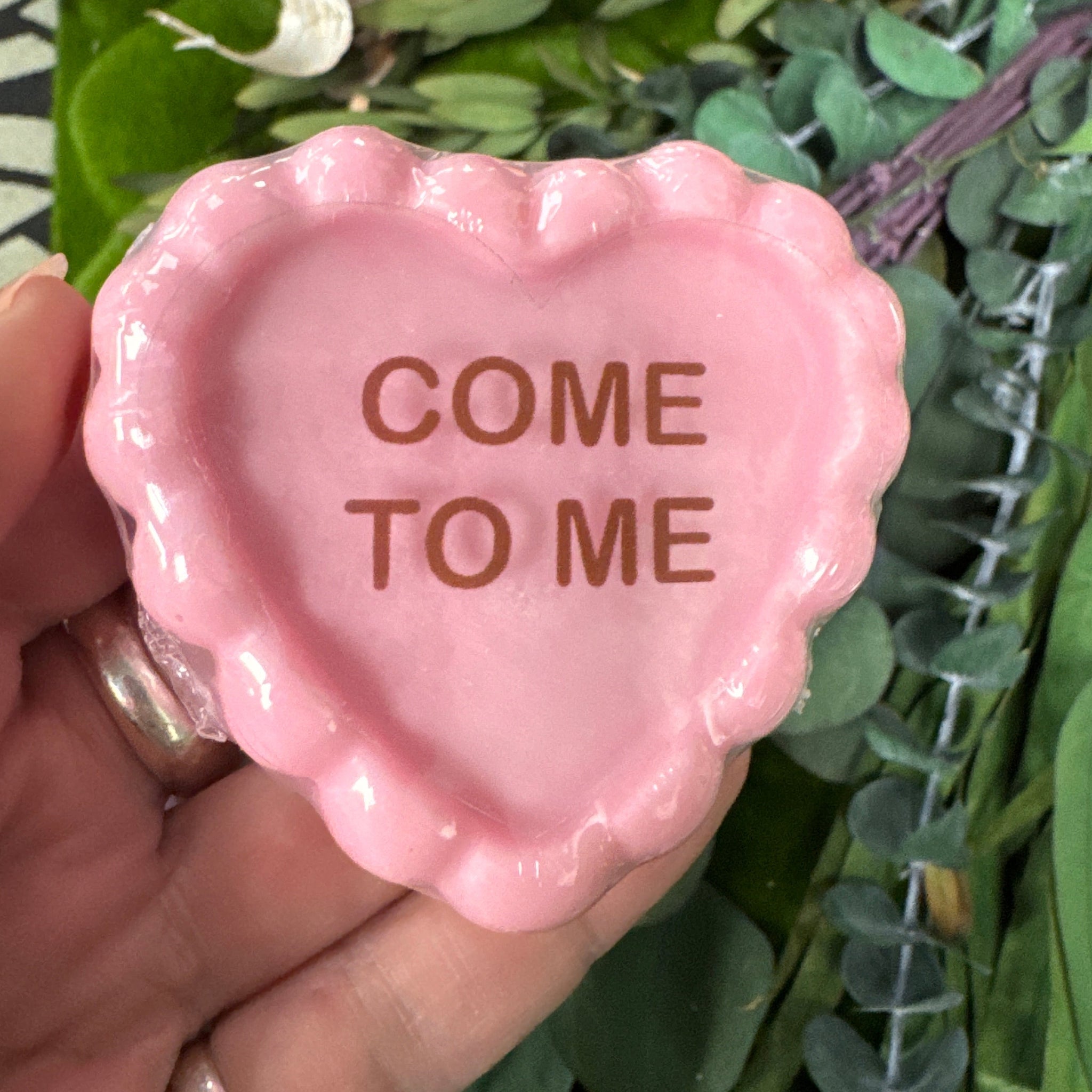This super cute heart shaped soap looks like a classic 'conversation heart' candies! Come to Me magic is done to draw sweet, loving energy to you. Use this luxurious soap as part of your daily routine to infuse your aura with it's yummy scent and vibe, or keep it for special occasions or as part of a larger piece of magic or ritual work for yourself.