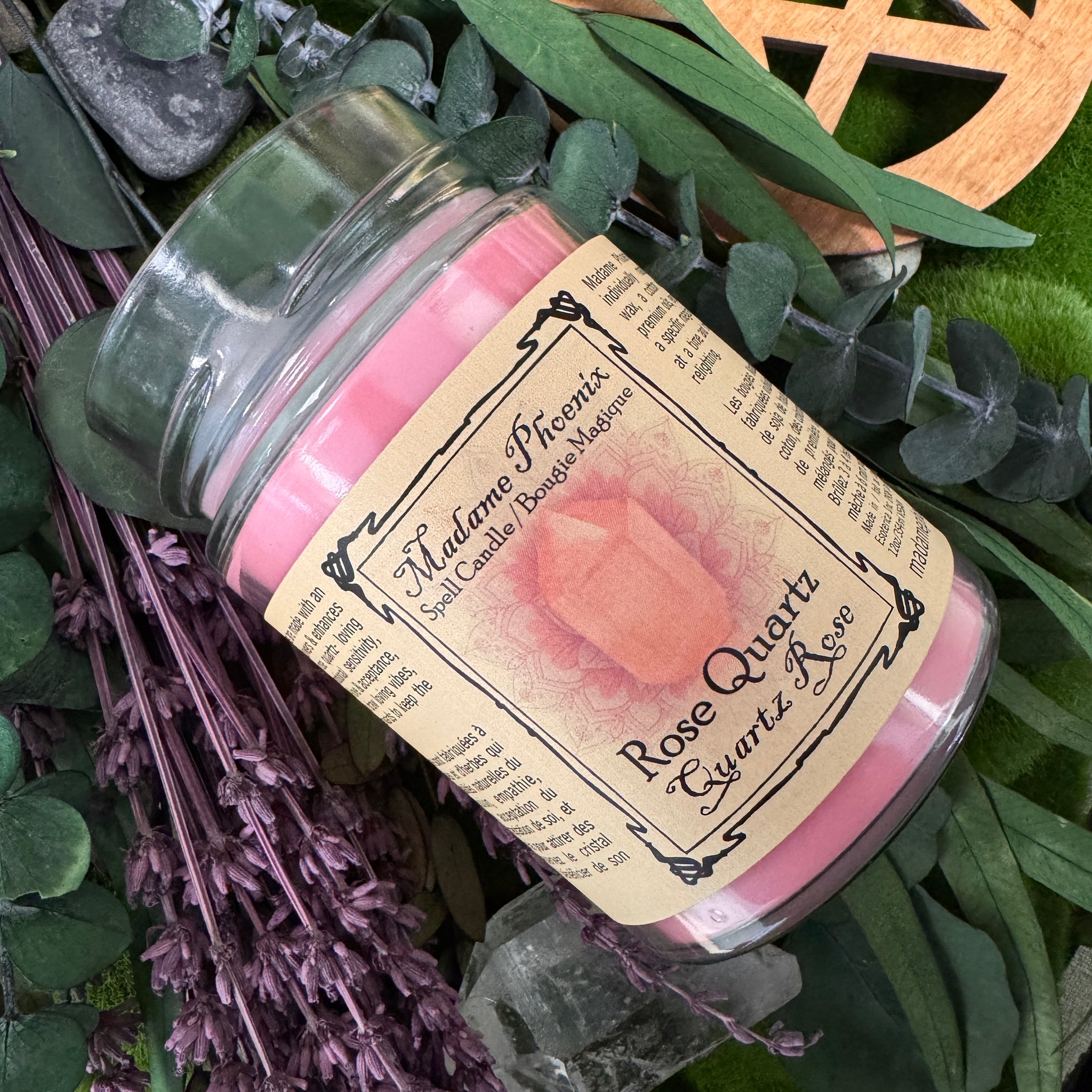 Rose Quartz candles are a delicate pink.