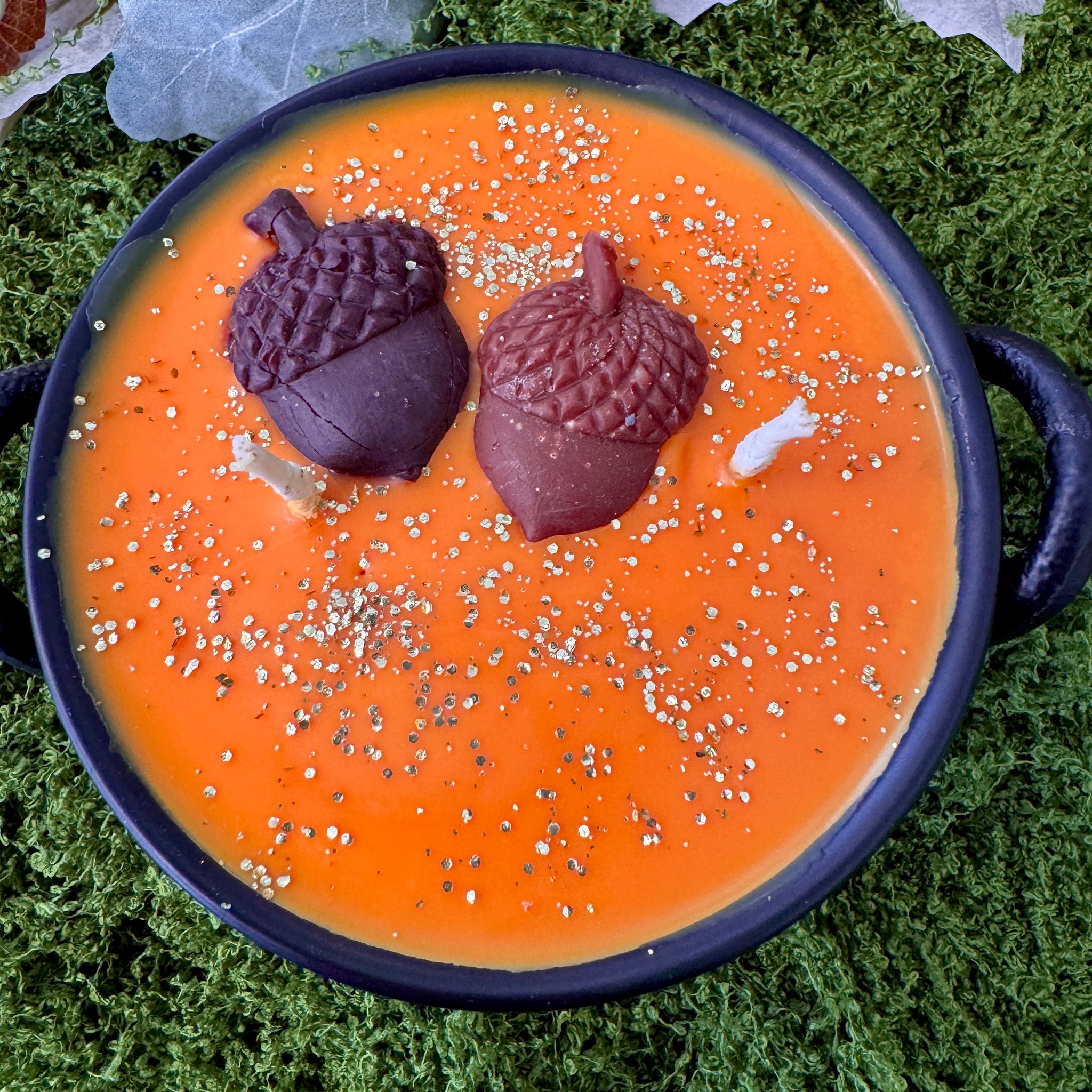 Use when working magic to bring the fulfillment of tangible reward for effort, manifesting a full harvest of abundance into your life. Topped with two adorable wax acorns and biodegrading glitter